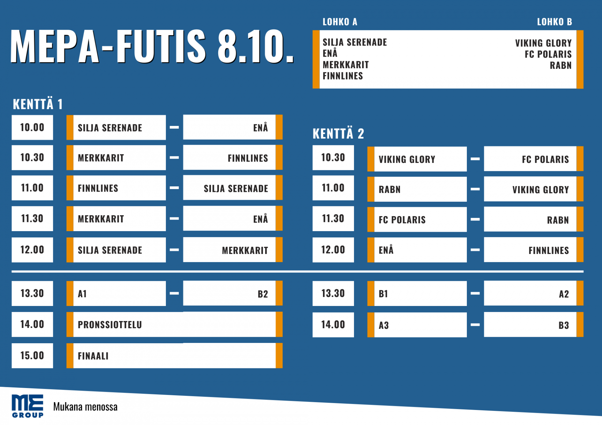 Jos haluat mukaan turnaukseen, mutta sinulla ei ole joukkuetta, niin ole yhteydessä MEPAn Jaakko Aarninsaloon jaakko.aarninsalo@mepa.fi (+358 40 504 3761)